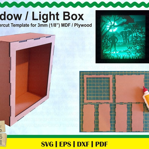 Download Shadow box frame svg, cnc or laser cut template for 3mm (1/8") mdf or plywood. 3D Light box template, shadow box glowforge svg, shadow box high quality SVG files for Cricut and Silhouette cutting machines.