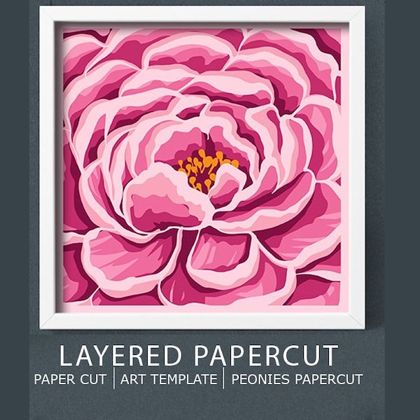 Download Peonies 3D Papercut Shadow box, 3D Layered Flower SVG Shadow Box, Cricut Design Downloads PNG Transparent Printing Design, Paper Craft high quality SVG files for Cricut and Silhouette cutting machines.